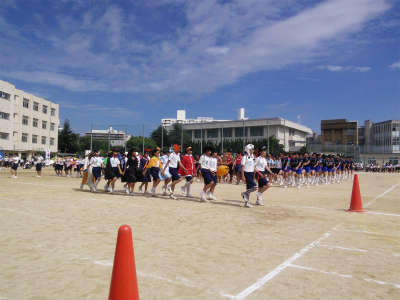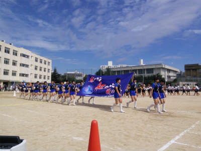 まず、バレーボール部です。バレーボール部は、大阪市の大会や府の大会で常に上位に進出しています。今年は全国大会で優勝した私学の強豪、金蘭会中学校と対戦するなど、私学の壁に阻まれました。しかし、あきらめずに頑張る姿に感動させられます。