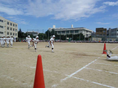 野球部は、とても礼儀正しいクラブです。廊下ですれ違う時に帽子を取って、「こんにちは」と、元気よくあいさつしてくれます。来校者から、「礼儀正しいですね」と、必ずほめていただきます。