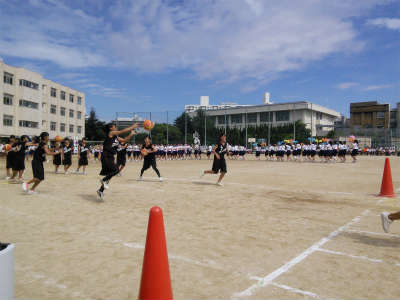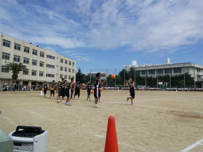 女子バスケットボール部と男子バスケットボール部の入場では、チェストパスやバウンズパス等、様々なパスを披露してくれました。