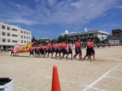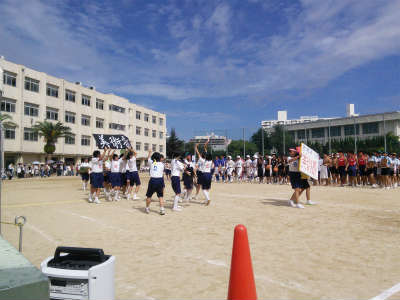 陸上部は、横断幕を掲げながら、堂々の行進です。