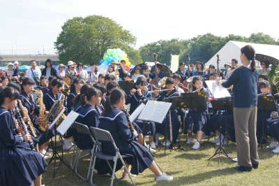 10月16日(日)に、淀川河川敷フェスティバル(西中島南方付近)が開催されました。オープニングは、北中吹奏楽部が務めました。『ロサンゼルスオリンピックのファンファーレ』で幕が開き、4曲を披露、聴衆を魅了しました。大きな拍手を受けました。