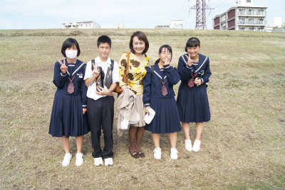 吹奏楽部のオープニングに、北中の大先輩である北野たえこさんが激励に来てくださいました。北野たえこさんは、大阪市会議員として市民の代表として活躍しておられます。生徒たちにとっては偉大な先輩の突然の激励に、「ビックリしました」と、驚きながらも喜んでいました。