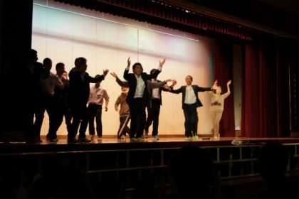 先生たちが舞台に登場すると、「キャーッ」「オオッ」という、様々な歓声が聞こえてきました。