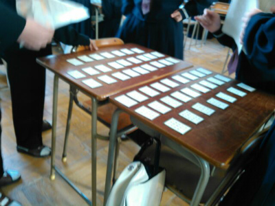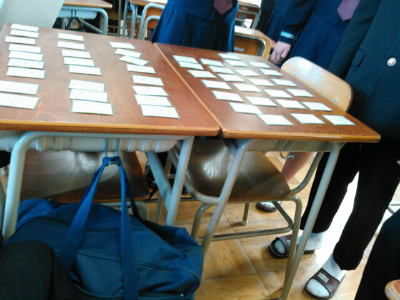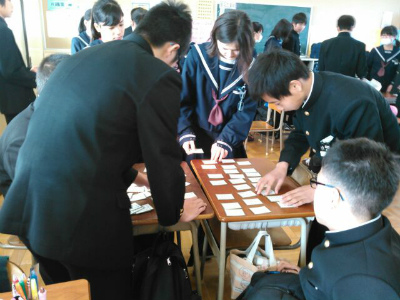 2月6日(月)1限、本大会(2月6日)に向けて、2年生百人一首交流戦が行われました。 みんな静かに真剣に取り組んでました。