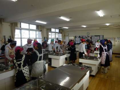 2年生の家庭科の授業は2回目の調理実習を行っています。1回目の実習ではてきぱきと全員が動くことができ、またエプロン、バンダナをしっかり身につけることができました。