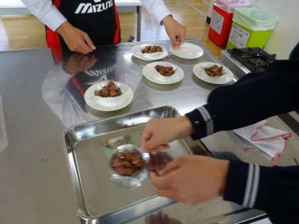 今回も卵は一切使わず、乳、大豆、小麦、ゼラチンを含んだ食材を使用します。一般的にチョコレートを溶かす時、湯せんで行いますが今回はバターとマシュマロを溶かした熱を利用しています。またマシュマロは冷蔵庫に入れて冷やし固めなくても常温で固まる性質を持っています。簡単に調理できて、すぐ食べられるお菓子です。火の元に気をつけて安全に行ってほしいです。