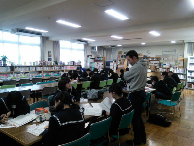 本日、受験しない人は、図書室で自習しています。公立高校に向けて、自己申告書を作成している人もいます。入試問題をしている人もいます。それぞれが何かを真剣に行っています。