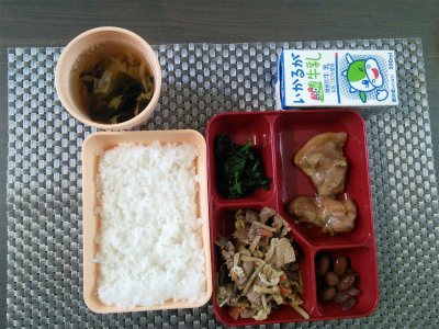 しっかりと味がついていて、おいしくいただきました。鶏肉の照り焼きは、見た目がやはり気になります。味はおいしいのですが、見た目で嫌がる生徒が出てくるような気がします。