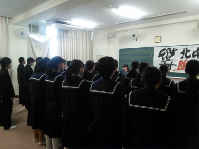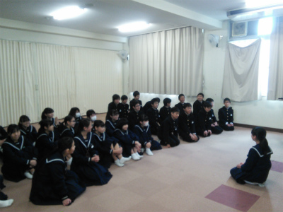 第一と第二音楽室など、広い教室を使ってクラスごとに合唱練習を行います。中には、指揮者から、「座ってください。良い声が出ていません。もっと集中して歌ってください」と、喝が入った場面もありました。