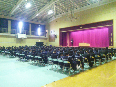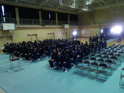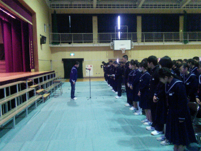 3年生は、卒業式の練習を行っています。入場の練習を行い、本日の練習メニューの説明がありました。そして、一通りの流れを行動で確認しました。