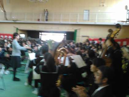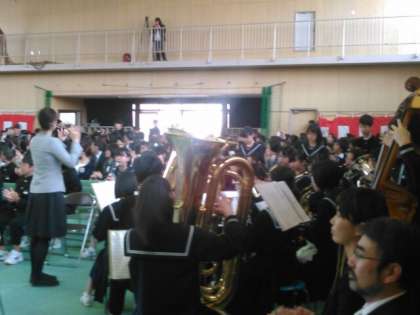 吹奏楽部の演奏にて新入生の入場が始まりました。