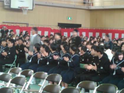 暖かい拍手に迎えられて新入生が入場です。