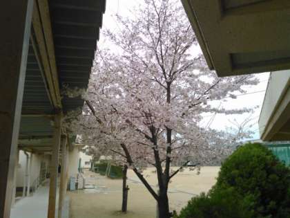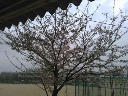 体育館横です。1本はまだ3分咲きです。
