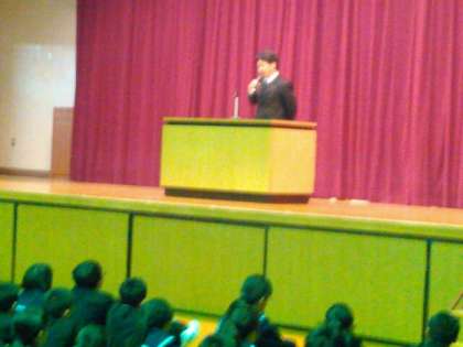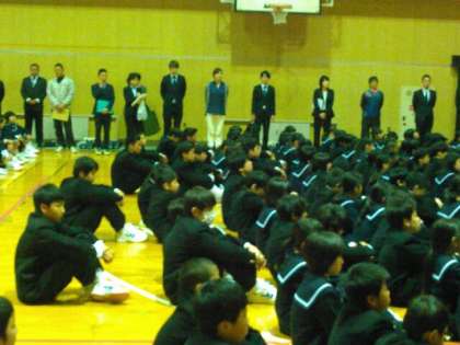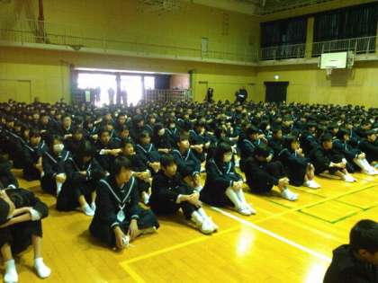 体育館内の生徒たちは、真剣に校長先生の話を聞いていました。