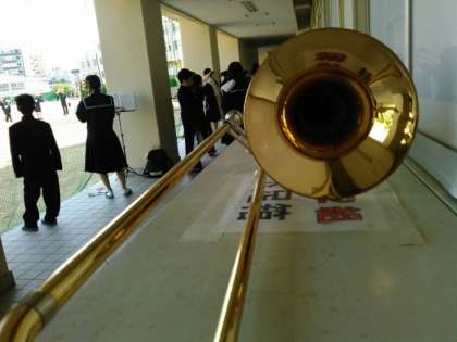 トロンボーンは、金管楽器の一種である。スライド式のものは、2つの長いU字型の管を繋ぎ合わせた構造を持ち、その一部(スライド)を伸縮させて音高を変える。また、バルブ式の物もあるそうです。