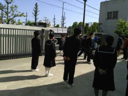 多くの先生方も歩道橋周辺・正門・通用門にて挨拶をしています。