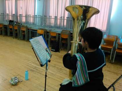 大型の低音金管楽器。最も大きく、最も低い音域を担っています。