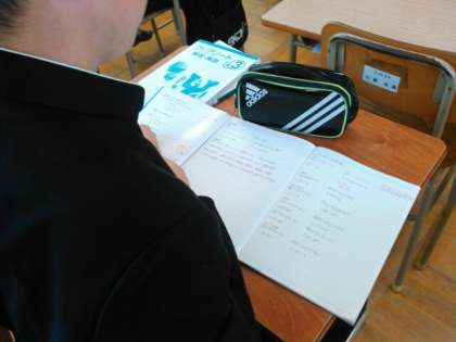 クラスは3年4組 試験前、生徒たちは真剣です。