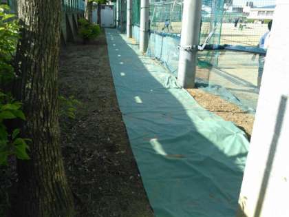 雑草防止のためのシートが敷かれています。
