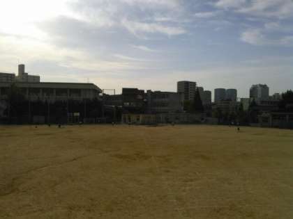 ソフトボール部、野球部、バスケットボール部が朝練習中です。