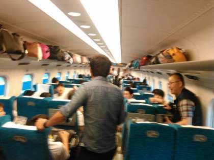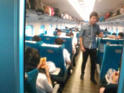 帰りの新幹線ひかり477号の車内のようすです。お疲れのようす