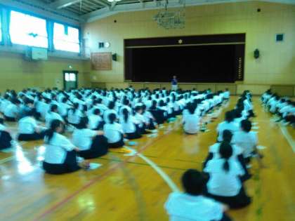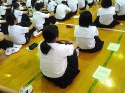 来週実施される職場体験の事前指導が体育館にて行われています。