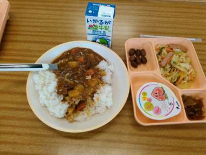 本日の給食はカレーライスです。