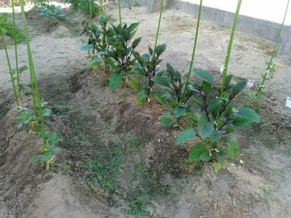 技術室横に色々な野菜の苗が植えられています。