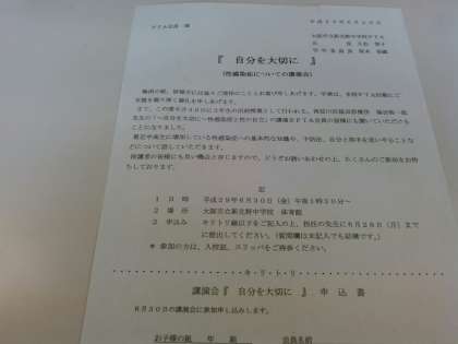 『自分を大切に』(性感染症についての講演会)