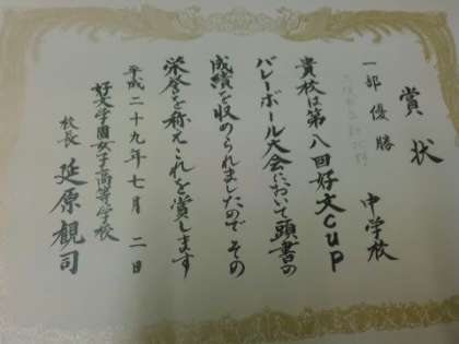 7月3日(月)【女子バレーボール部】 表彰
