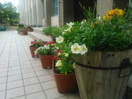 正門前のプランタンの花です。
