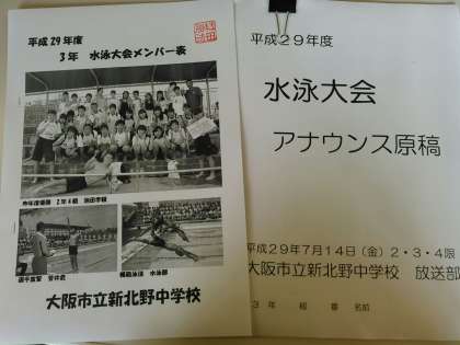 【3年生】 水泳大会メンバー表完成
