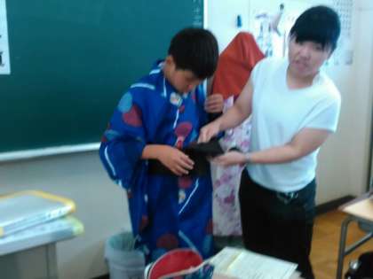 7月13日(木)【1年生】 家庭科授業 ゆかたを着よう