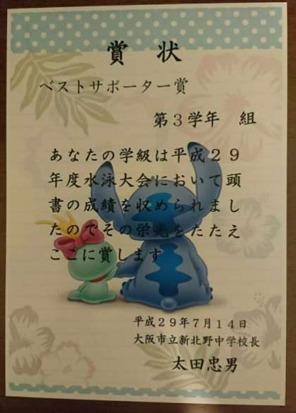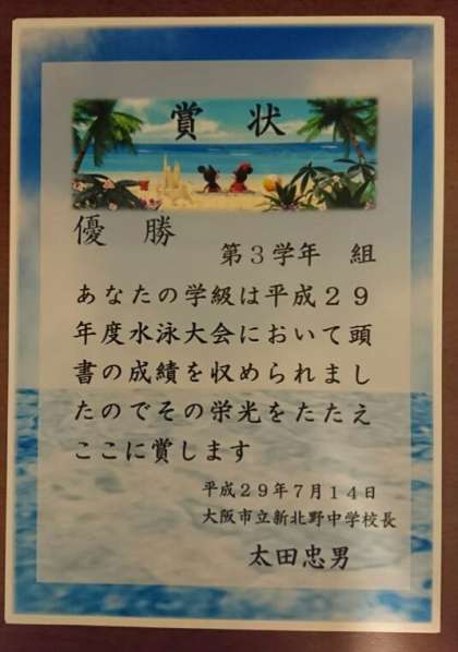 写真は表彰状です。