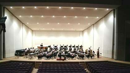 地区大会本番の会場にてホール練習を行っています。