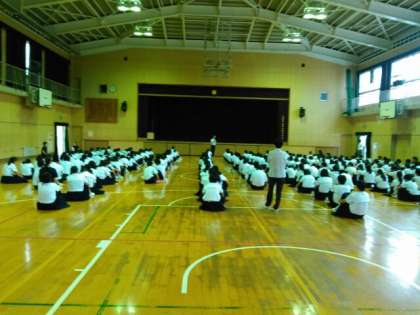 休暇前指導の集会を行っています。