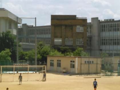 本校隣の北野高校 校舎に残る弾痕です。