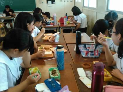 3年2組吉川学級 昼食です。