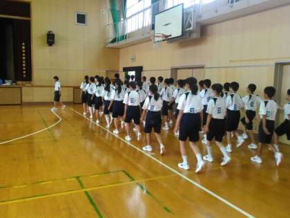 体育館にて行進練習です。