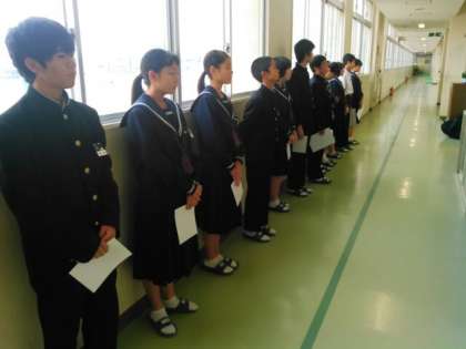 本日の全校集会・認証式は、雨のため放送にて行いました。