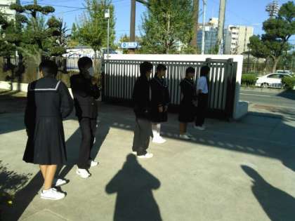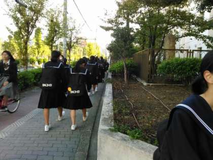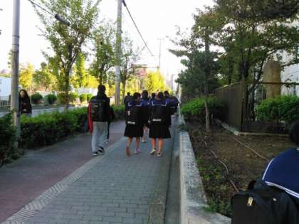 写真は登校風景です。