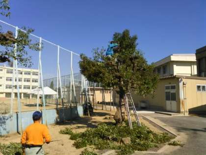 樹木の剪定作業が行われています。