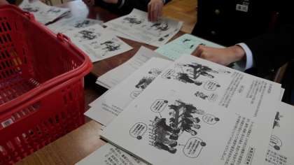 面接ハンドブックの製本を行っています。
