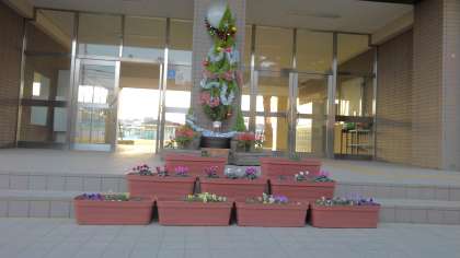 もう一枚の写真は正門入口のクリスマスツリーです。