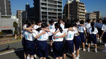 各クラスが円陣肩を組んで大きな声で気合いを入れました。