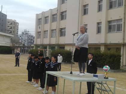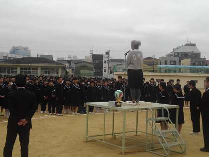 美術科本庄先生離任の挨拶です。