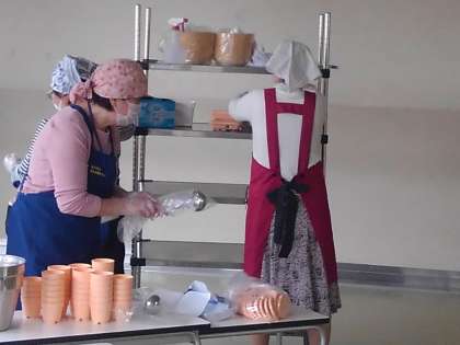カレーのルーを小缶に入れて、さらに拭き取る作業。