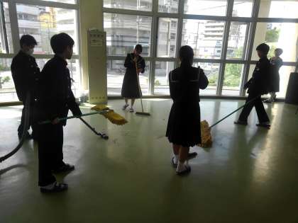 図書室までの廊下清掃が分担されています。