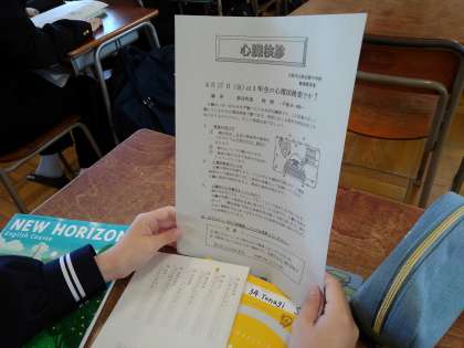 心臓検診の案内プリントが配布されました。
