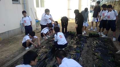 バスケットボール部 枝豆苗植え付け